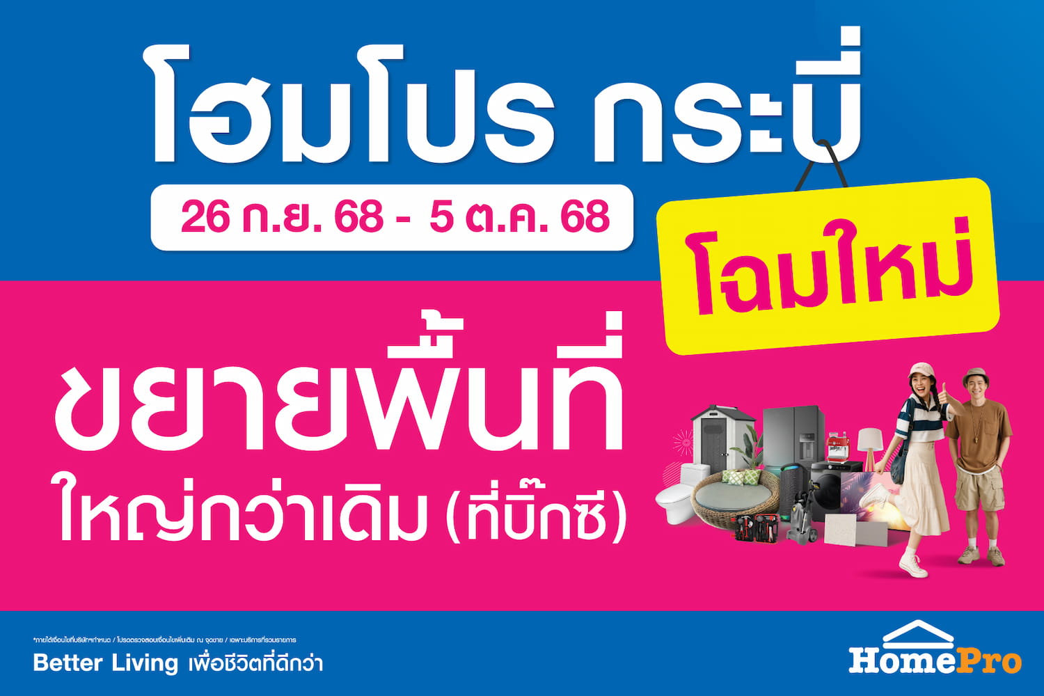 โฮมโปร รุกตลาดบ้านท้ายปีต่อเนื่อง ทุ่มงบ 113 ล้านบาท ฉลองโฉมใหม่! โฮมโปร กระบี่ (ที่บิ๊กซี) ขยายพื้นที่ใหญ่กว่าเดิม 2 ชั้น รวมกว่า 6,720 ตร.ม. ตอบโจทย์การขยายตัวในเมืองท่องเที่ยวชั้นนำ ยกระดับสู่ศูนย์รวมโซลูชันครบทั้งสินค้าและบริการเรื่องบ้าน ที่ตอบโจทย์ทั้งการอยู่อาศัย คนทำงาน และผู้ประกอบการ ด้วยโซน Hard Line – Soft Line ที่ครบครัน ตั้งแต่งานโครงสร้างจนถึงของแต่งบ้าน และมีสินค้า Private Brand by HomePro ที่โดดเด่นทั้งดีไซน์และคุณภาพ พร้อมเสิร์ฟโปรแรง 10 วันเต็ม ตั้งแต่ 26 กันยายน – 5 ตุลาคม 2568 นี้ ตั้งเป้ายอดขายไม่ต่ำกว่า 60 ล้านบาทต่อเดือน