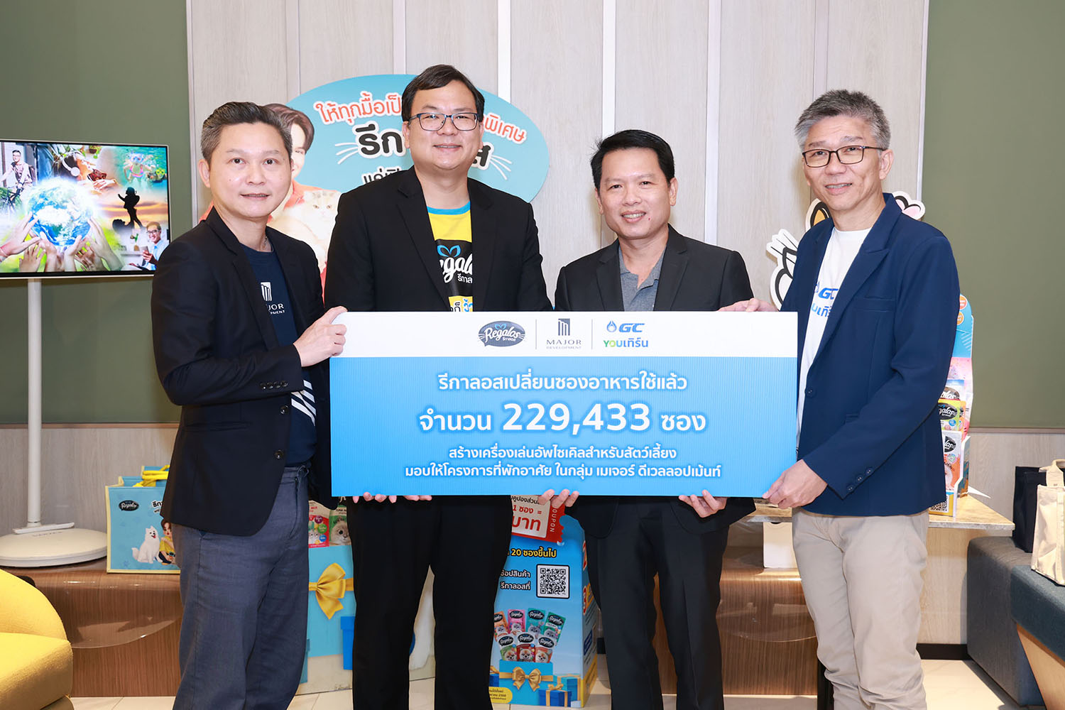 ทางด้าน นาย ชวลิต วรสารพิสุทธิ์ ประธานบริหารฝ่ายส่งเสริมประสบการณ์และบริการลูกค้า บริษัท เมเจอร์ ดีเวลลอปเม้นท์ จำกัด (มหาชน) กล่าวว่า กว่า 26 ปี เมเจอร์ ดีเวลลอปเม้นท์ มีความมุ่งมั่นพัฒนาโครงการที่อยู่อาศัยที่สามารถเลี้ยงสัตว์ได้จริง 100% เราเชื่อว่าการอยู่อาศัยที่ดี ไม่ได้หมายถึงเพียงความสะดวกสบายของผู้อยู่อาศัย แต่ยังรวมถึงการดูแลสิ่งแวดล้อมรอบตัว การร่วมมือกับ รีกาลอส ในครั้งนี้ จึงไม่เพียงสร้างพื้นที่ Pet Zone ที่มีชีวิตชีวา แต่ยังเป็นการลดปริมาณขยะและต่อยอดให้เกิดคุณค่าใหม่ เราเชื่อว่าของเล่นที่เกิดจากการอัปไซเคิลนี้ จะสร้างรอยยิ้มให้ทั้งคนในครอบครัวและเพื่อนสี่ขาที่เรารัก พร้อมทั้งสะท้อนความตั้งใจของเราที่อยากเห็นสังคมที่น่าอยู่และยั่งยืนต่อไป