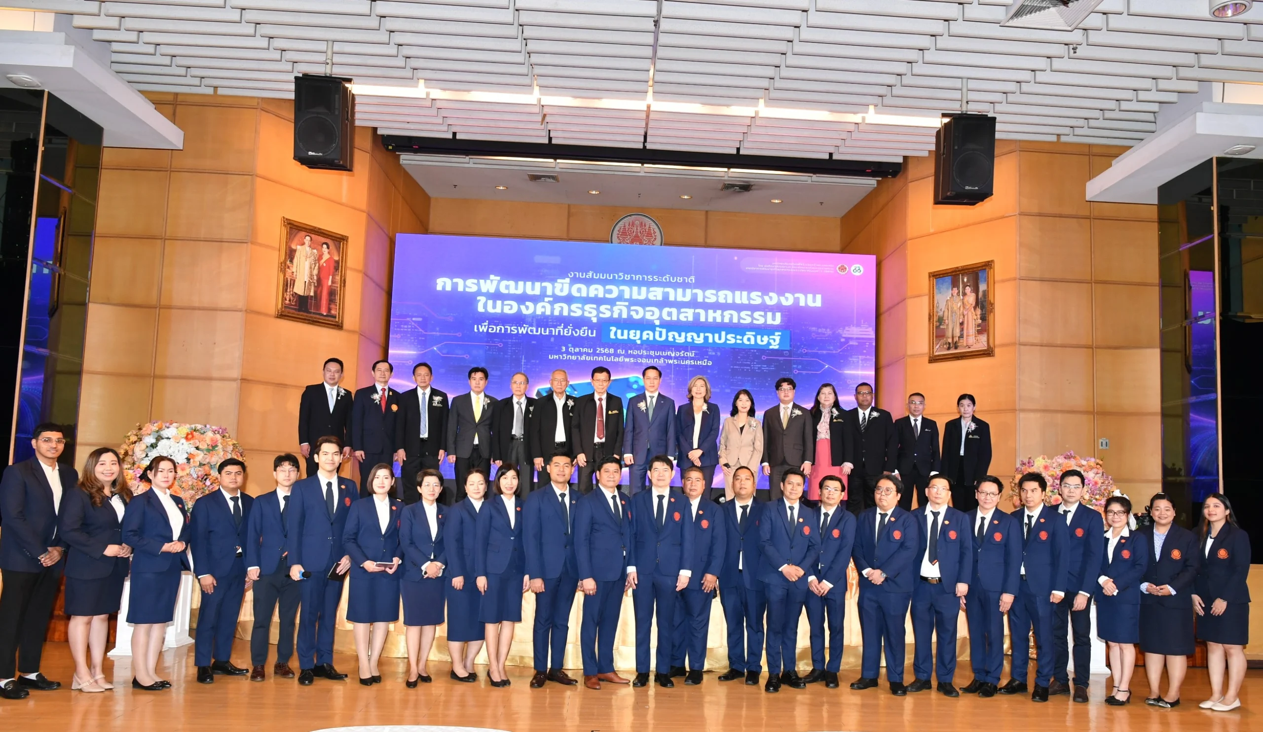 งานสัมมนาจัดโดยคณะพัฒนาธุรกิจและอุตสาหกรรม มจพ. เพื่อร่วมฉลองครบรอบ 66 ปี ของการก่อตั้งมหาวิทยาลัยเทคโนโลยีพระจอมเกล้าพระนครเหนือ หรือ วิทยาลัยเทคนิคไทย-เยอรมัน วัตถุประสงค์การจัดงานในครั้งนี้ ด้วยในปัจจุบันเทคโนโลยีปัญญาประดิษฐ์ (AI) เข้ามามีบทบาทอย่างกว้างขวางในการดำเนินธุรกิจทุกขั้นตอนในผลิตขององค์กรอุตสาหกรรม ส่งผลต่อรูปแบบการดำเนินธุรกิจอุตสาหกรรม โดย AI เป็นเครื่องมือสำคัญที่ช่วยเสริมประสิทธิภาพการทำงาน ลดต้นทุน และสร้างนวัตกรรมใหม่ ๆ ผ่านการประมวลผลข้อมูลที่มีความแม่นยำและรวดเร็ว นอกจากนี้ AI ยังเป็นเครื่องมือที่ช่วยในการวิเคราะห์ข้อมูลขนาดใหญ่ (Big Data) และกระบวนการทำงานอัตโนมัติ ซึ่งทำให้ธุรกิจสามารถปรับตัวต่อการเปลี่ยนแปลงของตลาดและเทคโนโลยีได้อย่างมีประสิทธิภาพ ในขณะเดียวกัน แรงงานไทยก็กำลังเผชิญกับการเปลี่ยนแปลงเชิงโครงสร้างอย่างรวดเร็ว อาทิเช่น การเปลี่ยนแปลงลักษณะงาน ทักษะที่จำเป็น หรือรูปแบบการจ้างงาน สิ่งเหล่านี้ส่งผลกระทบต่อศักยภาพของแรงงานในการแข่งขันทั้งในระดับประเทศและระดับสากล หากแรงงานขาดการพัฒนาและปรับตัวอย่างเหมาะสม องค์กรอาจประสบกับภาวะขาดแคลนแรงงานที่มีคุณภาพ และไม่สามารถก้าวทันต่อการเปลี่ยนแปลงของเทคโนโลยีและเศรษฐกิจโลกได้