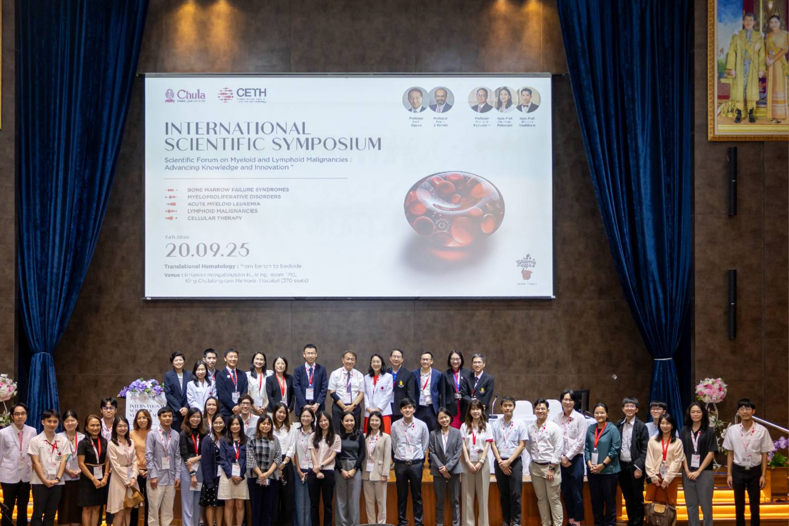 The Faculty of Medicine, Chulalongkorn University, and King Chulalongkorn Memorial Hospital, Thai Red Cross Society, through the Center of Excellence in Translational Hematology (CETH), organized the International Scientific Symposium: “Scientific Forum on Myeloid and Lymphoid Malignancies: Advancing Knowledge and Innovation” on September 19–20, 2025. The event aimed to bridge knowledge in genetics and genomics with treatment approaches for hematologic malignancies. It featured in-depth presentations by Thai and international experts and provided a platform for the exchange of clinical experiences throughout both days.