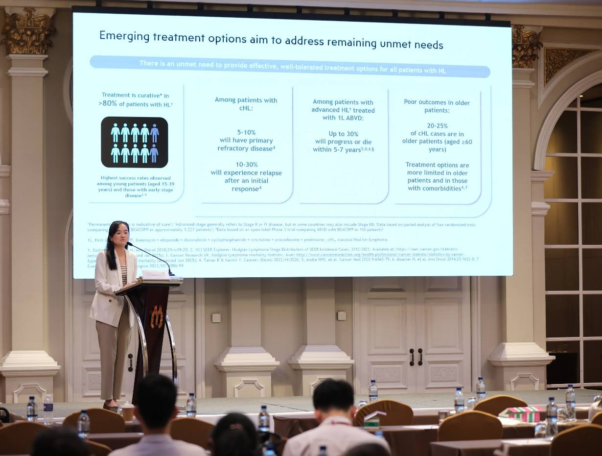 On the Thai expert side, presentations covered research findings and clinical experiences relevant to local treatment services. These included research on platelet function in iPS cells by Prof. Ponlapat Rojnuckarin; studies on HLA abnormalities in aplastic anemia by Asst. Prof. Sunisa Kongkiatkamon; studies on Tim-3 protein expression in acute leukemia by Asso. Prof. Chantiya Chanswangphuwana; molecular pathology diagnosis of lymphoma biopsy tissues by Dr. Narittee Suksawai; discovery of the HAVCR2 gene mutation in cutaneous lymphoma by Asso. Prof. Chantana Polprasert; CAR-T cell therapy for lymphoma by Asso. Prof. Kitsada Wudhikarn; and monitoring complications in patients treated with CAR-T cells by Asso. Prof. Jakrawadee Julamanee. These presentations highlighted the potential of Thailand’s medical sector on the international stage.