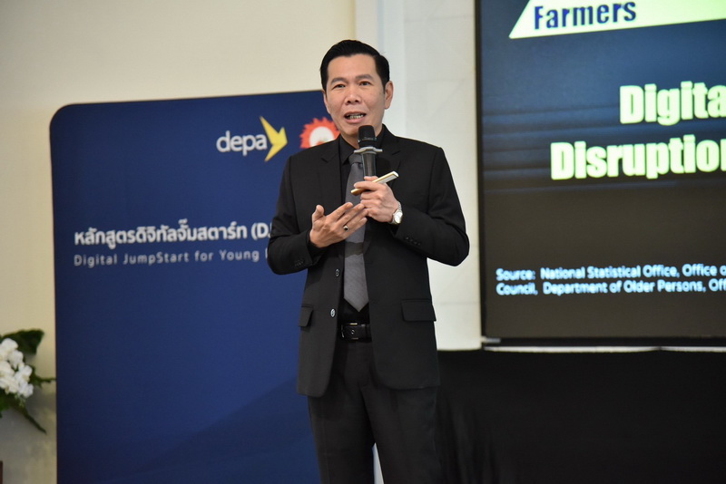 สำนักงานส่งเสริมเศรษฐกิจดิจิทัล (depa) โดย คุณธีรนันท์ ศรีหงส์ ประธานคณะกรรมการกำกับ สำนักงานส่งเสริมเศรษฐกิจดิจิทัล พร้อมด้วย ดร.ณัฐพล นิมมานพัชรินทร์ ผู้อำนวยการใหญ่ สำนักงานส่งเสริมเศรษฐกิจดิจิทัล ร่วมบรรยายเปิดหลักสูตรอบรม “ดิจิทัลจั๊มสตาร์ท รุ่นที่ 3” (Digital Jumpstart 3) เพื่อพัฒนาผู้บริหารยุคใหม่ รองรับการพัฒนาเทคโนโลยีและผลิตกำลังคนดิจิทัล เพื่อเสริมทักษะองค์ความรู้ สร้างความเข้าใจ และเปิดมุมมองด้านเศรษฐกิจดิจิทัล เพื่อเตรียมความพร้อมให้กับผู้บริหารยุคใหม่ที่จะเป็นกำลังสำคัญในการพัฒนาหน่วยงานหรือองค์กรในอนาคต ณ โรงแรมควีนสแลนด์ กรุงเทพ
