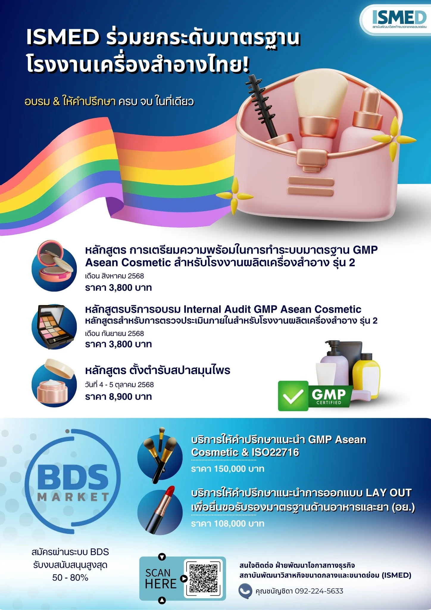 #ISMED #อบรมเครื่องสำอาง #อบรมGMP #GMPASEAN #ISO22716 #ธุรกิจสปา #มาตรฐานโรงงาน